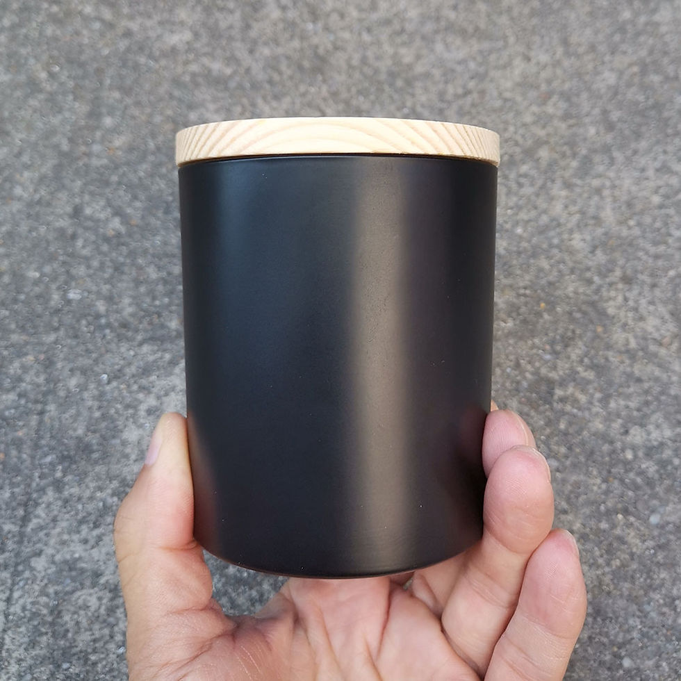 8.5oz Black Matte Straight Sided Glass Jars With Pinewood Lids 72 each